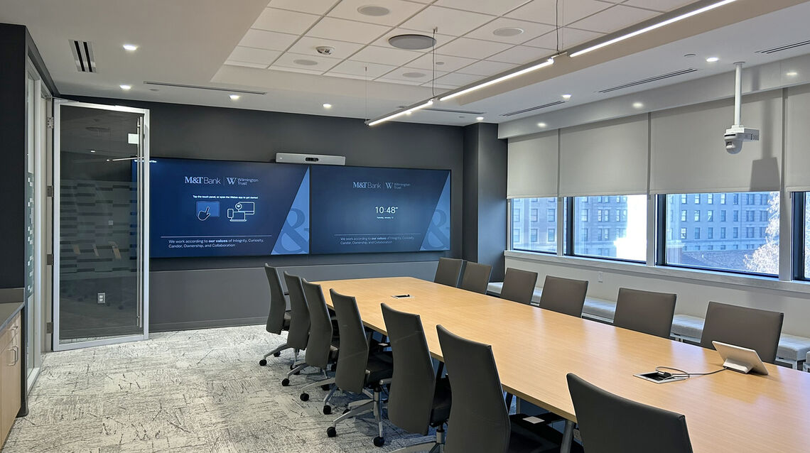 Clemens Construction completed a 21,045 SF full-gut renovation of M&T Bank’s Wilmington office on the 3rd floor of the Wilmington Trust 13-story office tower. The project transformed the existing floorplate into a modern, brand-aligned workplace through a complete interior fit-out that included all new MEP systems, modern lighting and controls, smart blinds, advanced AV infrastructure, new flooring, wall coverings, drop ceilings, extensive glass partitions, and FF&E selected to reflect M&T Bank’s corporate identity.